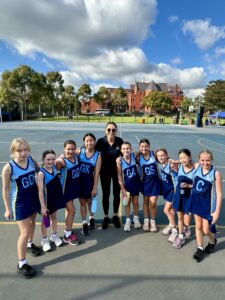 The Year 6 District Netball Team played exceptional Netball all day, demonstrating impressive skill and coordination despite some challenging teams they were up against. The Team finished seventh overall after a hard-fought victory against Genazzano in the playoffs.