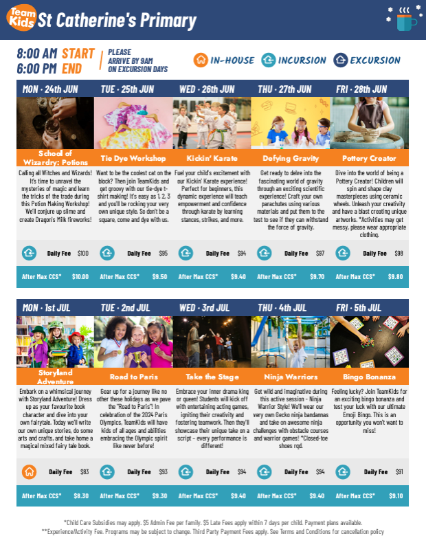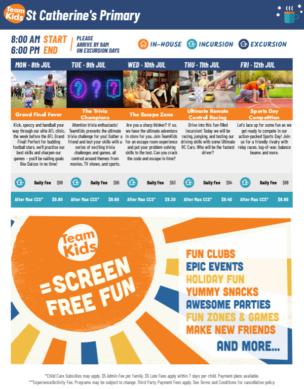 Bookings are now open for TeamKids’ Winter Vacation Care Program.