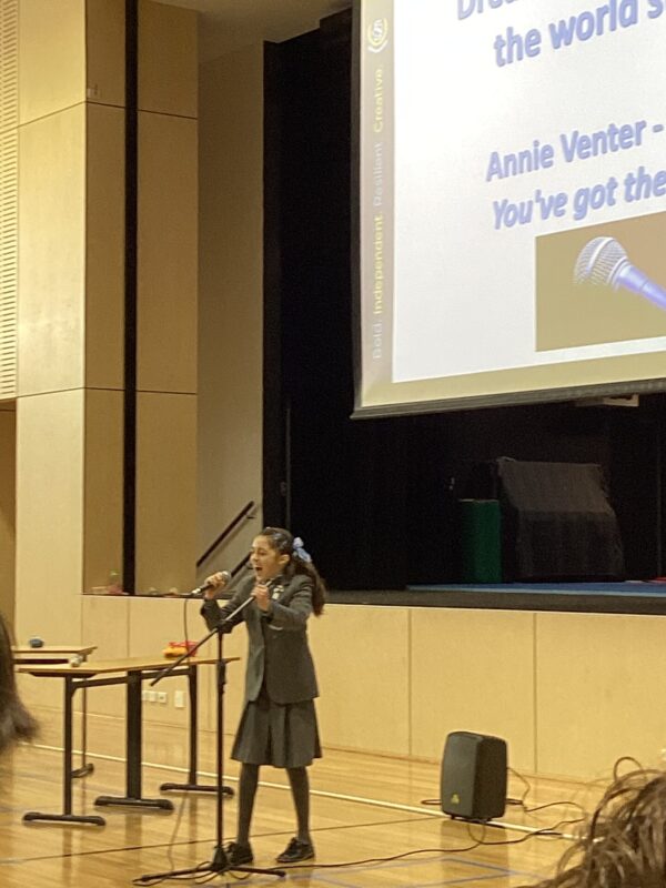 The Assembly featured an array of talented performances, including a stunning vocal performance by Year 4, Annabelle (Annie) Venter and an intricate gymnastics routine by Alexandra (Alexi) Kusumah in Year 6. These performances captivated the audience and highlighted the theme of dreams and aspirations, showing what can be achieved through dedication and hard work.