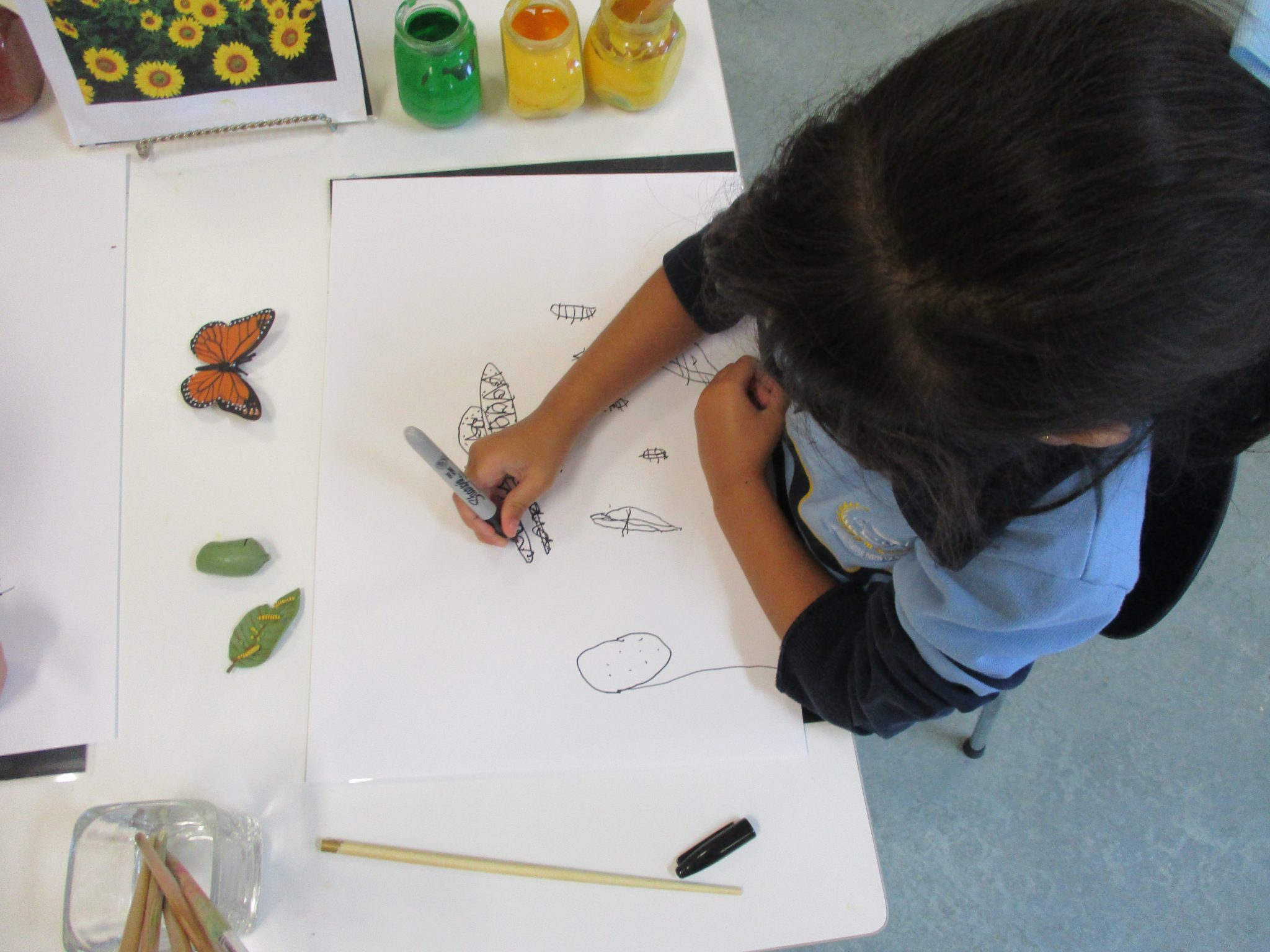 The children were provided with a variety of learning experiences which encouraged them to explore and investigate by themselves. They were provided with provocations such as books, photographs, insect figurines as well as life cycle figurines. The teachers asked the children questions, inquired into the children’s thinking and encouraged them to wonder. We have engaged in group discussions about insects and through this the teachers were able to gain an insight into the children’s current knowledge to then plan for future learning.