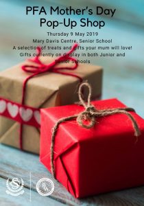 This year’s Parents’ and Friends’ Association Mother’s Day Pop-Up Shop will be held on Thursday 9 May in the Mary Davis Centre.