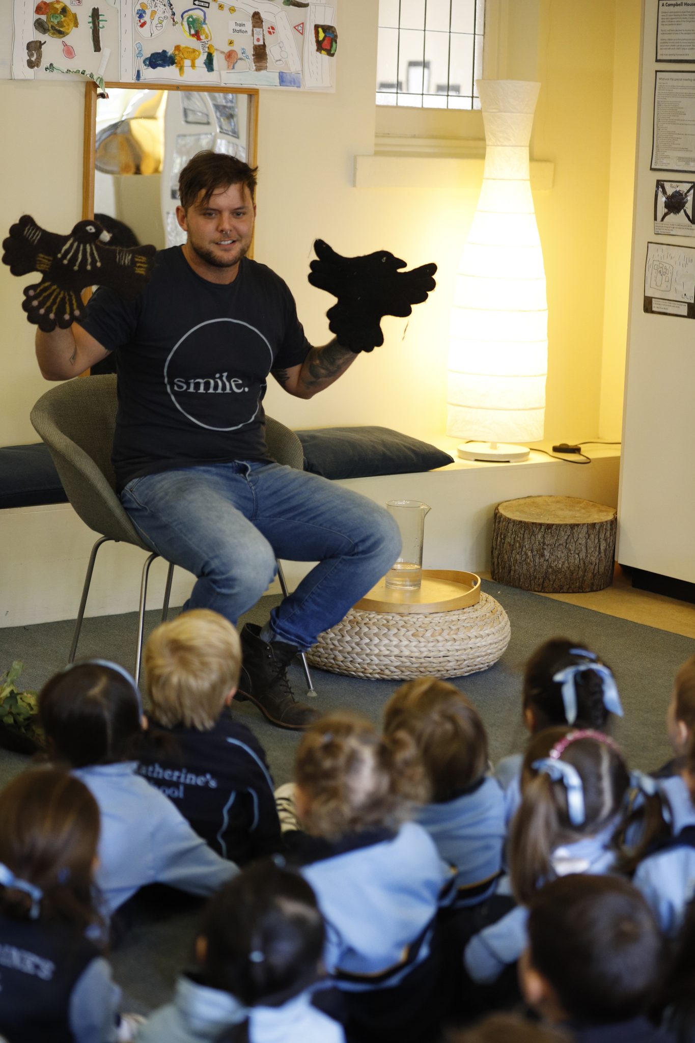 Indigenous educator, Jaeden Williams, shares his Indigenous language, culture and history with the children in the St Catherine’s ELC.