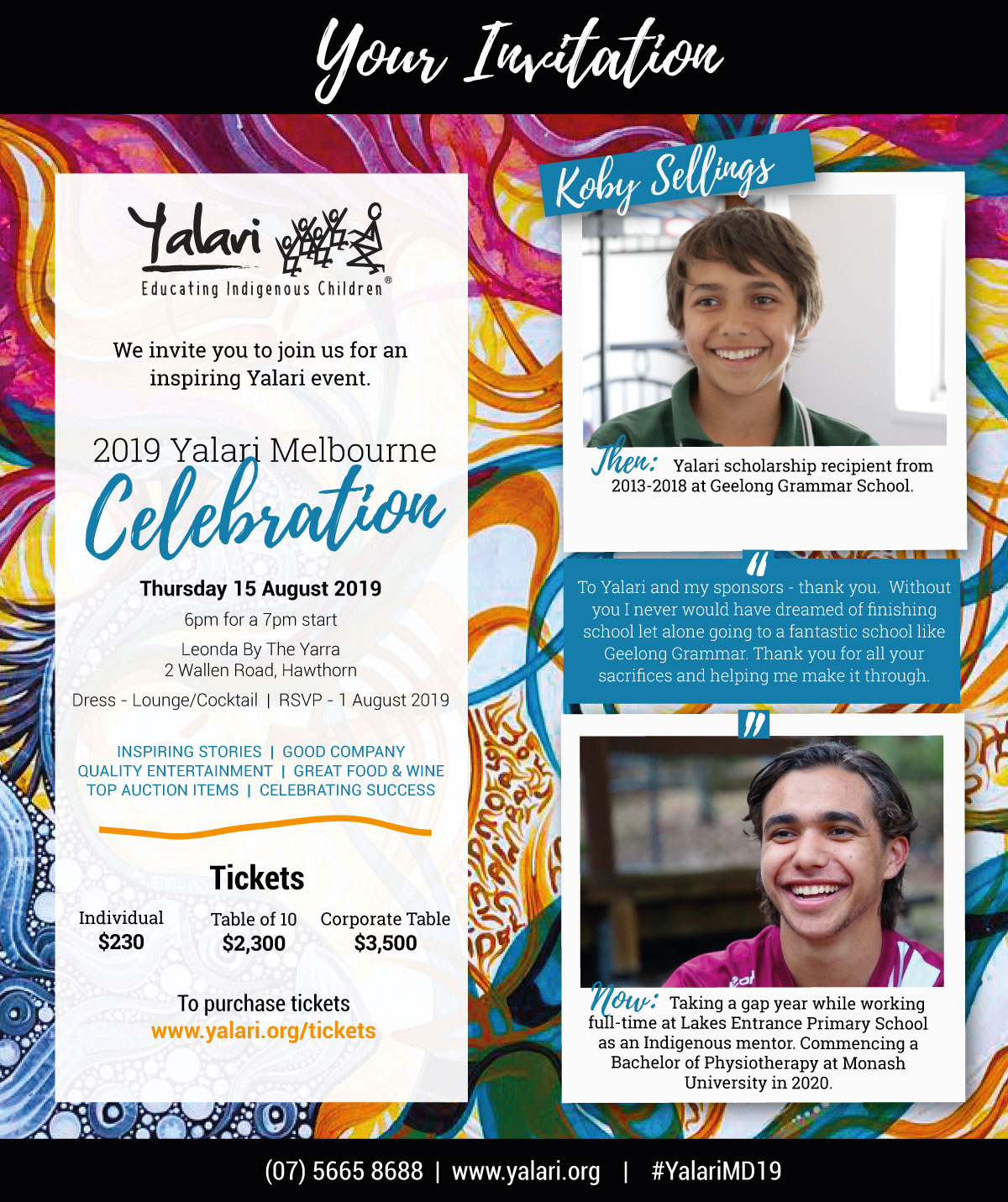 2019 Yalari Melbourne Dinner – You Are Invited!