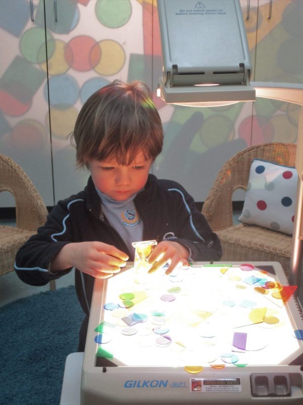 The commencement of Term 3 has seen the learners in the Blue Gum Room experiment with one such medium, the ‘language’ of light. A corner of our room features an overhead projector and an array of transparent and opaque objects in various colours and shapes. The children have explored size, pattern, shading, light, composition and reflection. From this examination, the children soon appreciated the awe and wonder of the images around them. Multiple viewpoints were created and shared by other members of the group. This experience furthered the children’s fascination and intrigue, both in a literal and metaphorical sense.