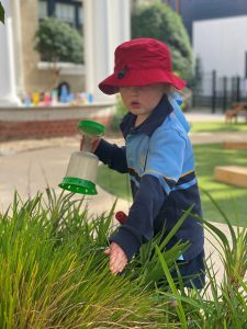 Outdoor play is a great way to develop children’s creativity and imagination. The children’s imaginations are stimulated by the natural elements and objects around them. They invent interesting ways for using the objects they have collected from the garden and incorporate these into their play.