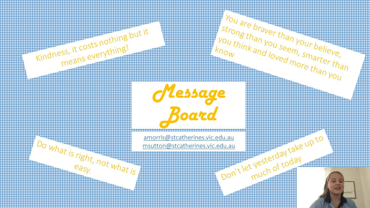 We hope to connect girls with their friends across the Junior School by posting messages to the Junior School on the Message Board. They can also contribute to Freaky Facts, photographs for Blue Ribbon Spirit and through performances and competition entries. We hope there is something there for everyone!