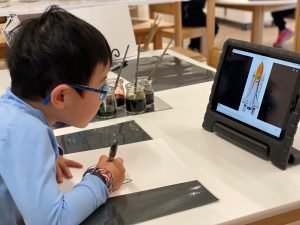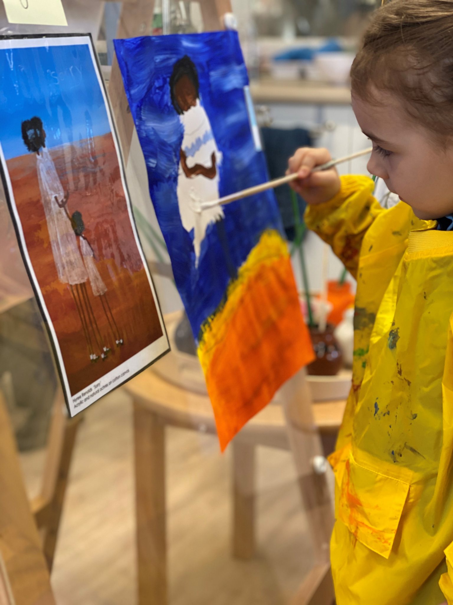 Throughout the year, the children in the ELC have the opportunity to experience a range of languages such as painting, drawing, construction, storytelling, light and shadow, sculpture, music and movement. This supports them to express their thought and ideas, to learn about themselves, and to discover the people and world around them.