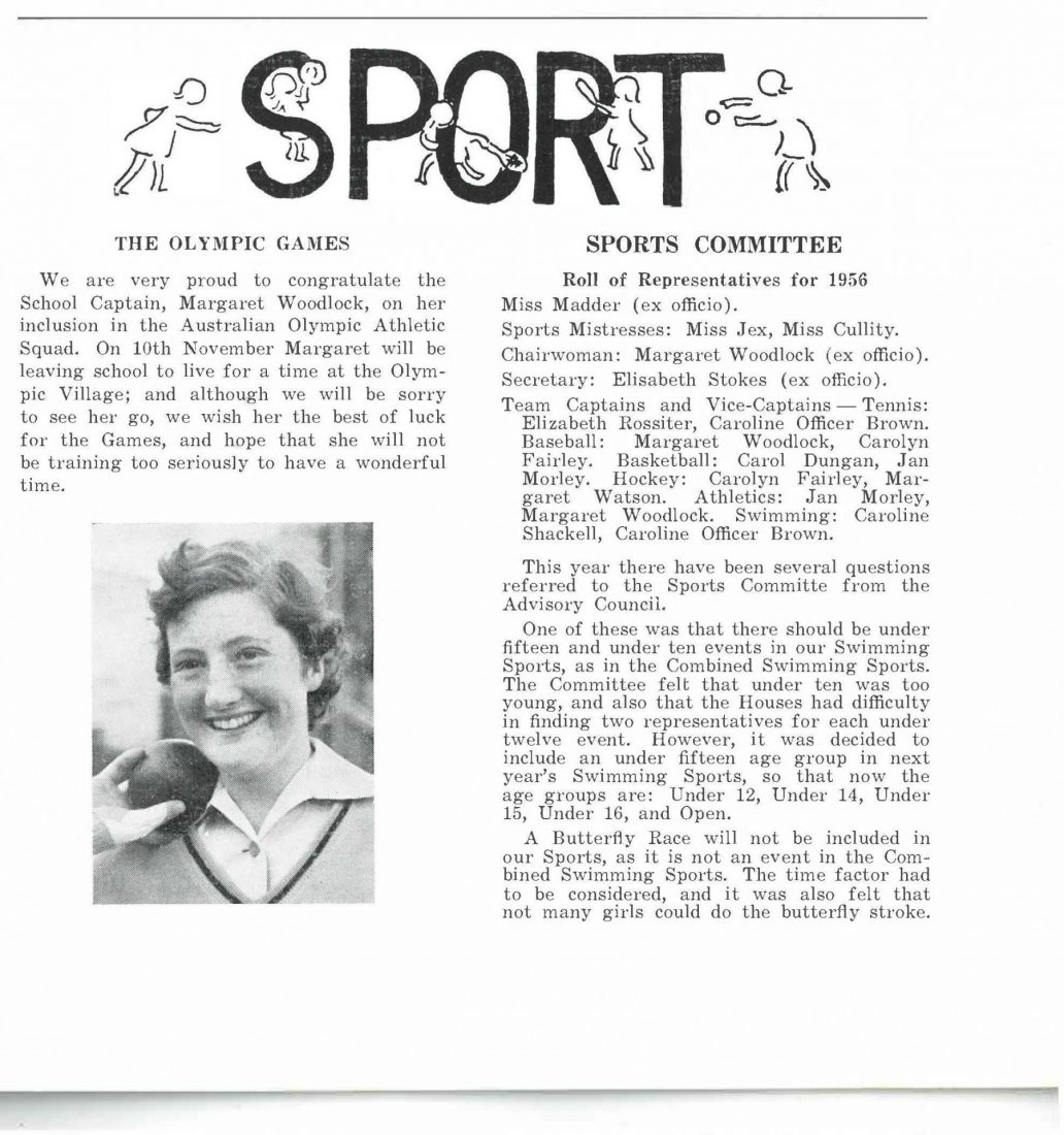 Her interest in both these sports started six years before the 1956 Olympic Games, when St Catherine’s was one of the first girls’ schools to introduce javelin and discuss throwing into the sports program. Read more about Margaret here.