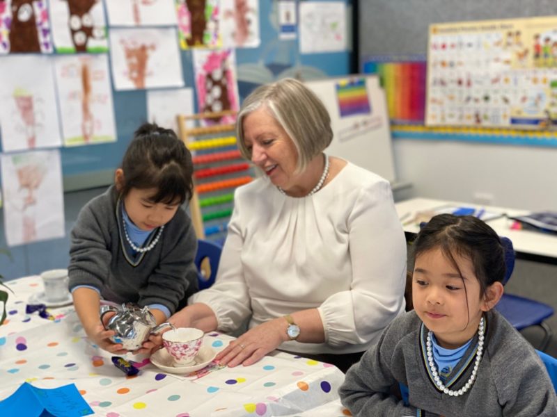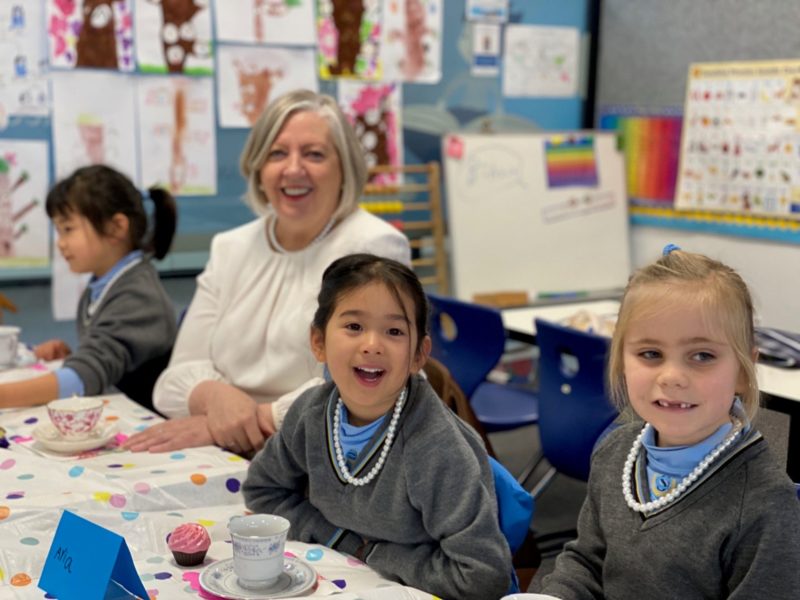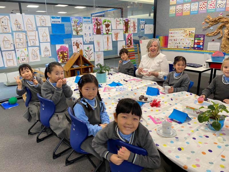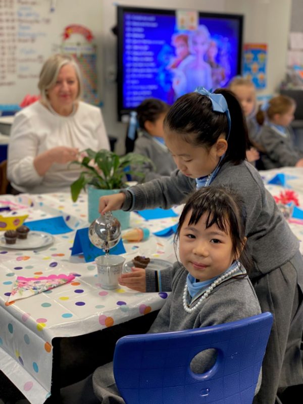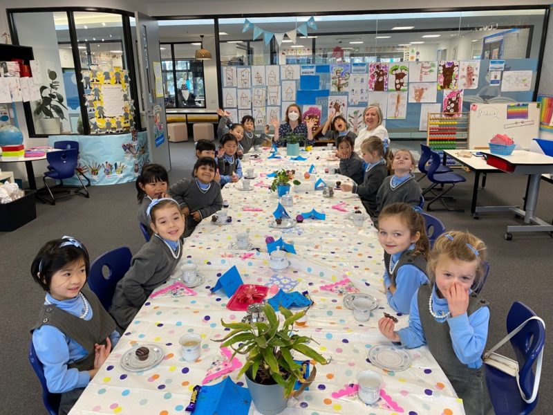 It was with great excitement that I received an invitation from our Prep class to join them for a tea party last Monday. I arrived to see a wonderful long table set with a beautiful tablecloth, lovely floral napkins, fancy China cups and saucers, mini -teapots full of juice or milk for making milos and platters of muffins, brownie slice (thank you Bianca!), croissants and macaroons! There was something to tempt everyone at the table.