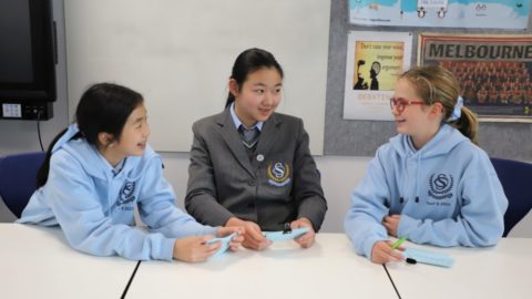 The Affirmative Team: Cheryl Li, Isabel Yang and Clara Barry set the agenda and clearly presented their case that the current flag does not reflect current Australia. They argued that the current flag was a distressing symbol to Indigenous Australians.
