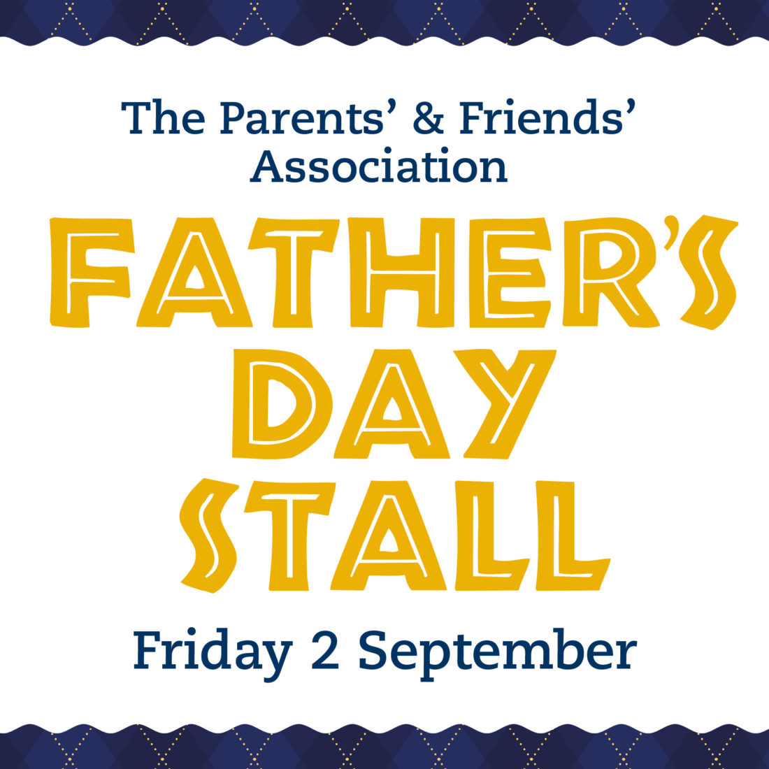 The Parents’ and Friends’ Association Father’s Day Stall will be held in the Mary Davis Centre on Friday 2 September, 8.00am to 2.00pm