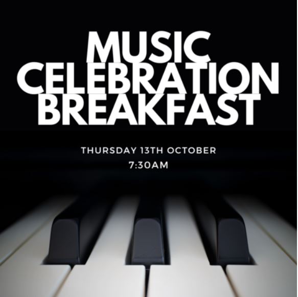 Celebration of Music Breakfast The Jamie and Rebecca Gray Theatre Thursday 13 October: 7.30am till 8.30am |