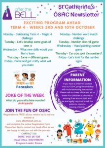 Upcoming activities for Term 4 Week 2 are detailed here.