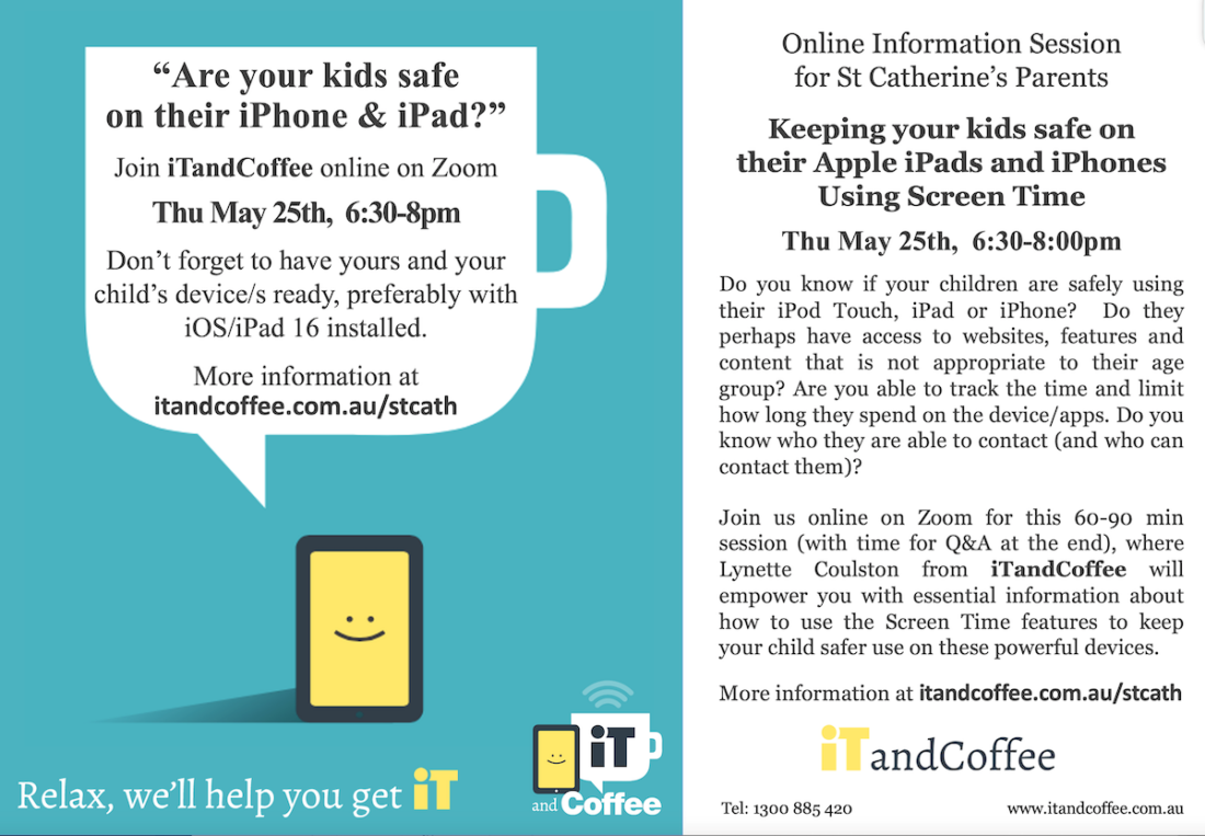 Registration: Please book using the following link www.itandcoffee.com.au/stcath