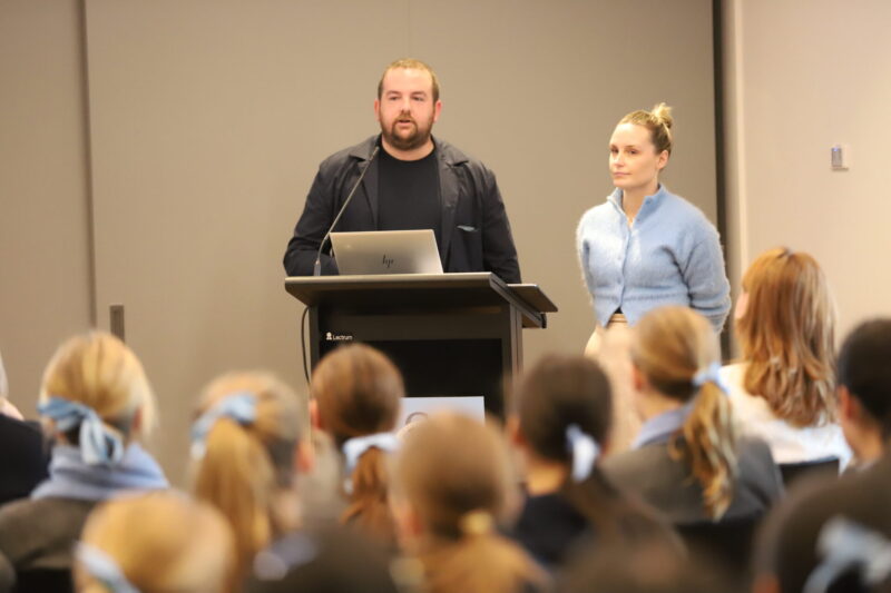 Mr Lachlan McArdle and Ms Ellie Spinks, Architects , JS Careers Day, August 2023