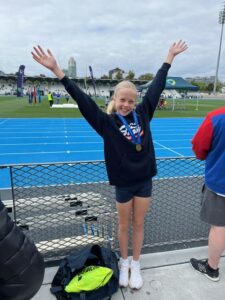 Year 6 student Imogen Brownjohn also won Gold in the 11-Years Long Jump with an incredible 4.62m jump.