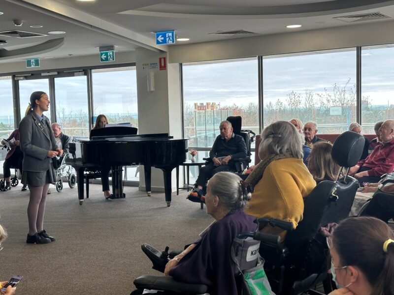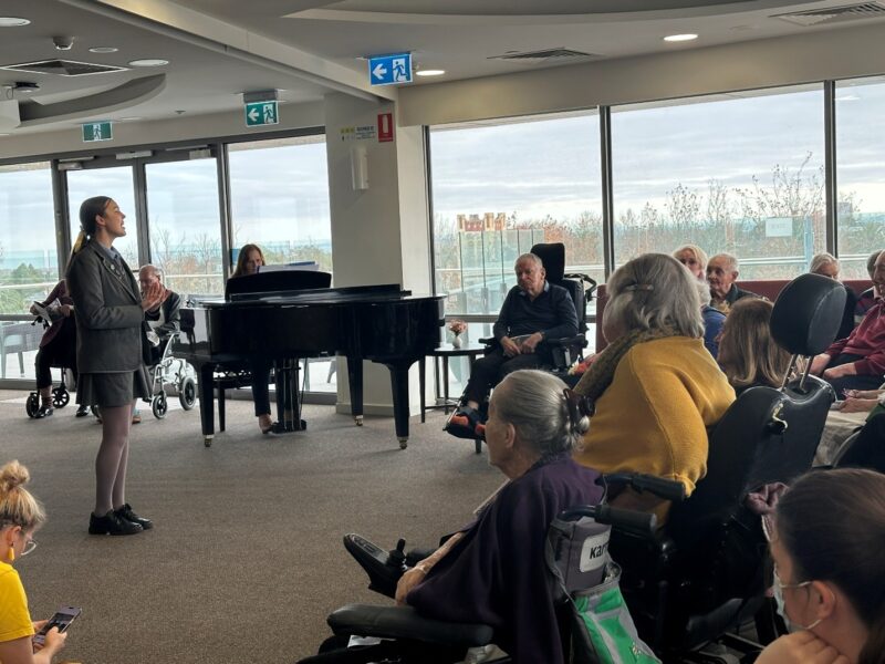 Recognising the need to foster such environments, the Years 9 and 10 Music Programs have provided students with a range of opportunities designed to nurture confidence and self-expression. Over the semester, students participated in workshops with alumni Coco Butterfield and Lilla Barrington, two former music students who are both pursuing tertiary studies in the Performing Arts. Students also developed their skills through masterclasses with internationally acclaimed Australian concert pianist Coady Green. Green, a past winner of the City of Sydney National Piano Competition who has performed at prestigious venues from Royal Albert Hall to Carnegie Hall, now lectures at the University of Melbourne. These enriching experiences empowered students to further develop their musical works and embrace the creative process. Their journey culminated in a concert at Regis Aged Care in Armadale, where students presented their final polished solo performances and concluded with a joyful ensemble sing-along featuring favourites such as Over the Rainbow and Georgie Girl. In this way, the program encouraged students to value personal growth and meaningful connection with others through music, rather than focusing solely on perfection. Reflecting on their experiences through the program, it was clear that our young musicians felt the same way.