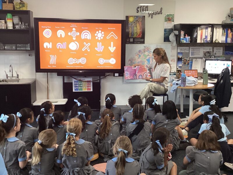 Merindah-Gunya worked with our students to produce artwork on wood; these will be assembled to make totem poles for the gardens around the Junior School. Each piece tells the story of cross-year level collaboration; our older students worked alongside the youngest members of our student cohort to promote inclusivity, strengthen bonds, and showcase the broad talents of our burgeoning artists. Merindah-Gunya also shared her book, Yakeen ‘Dreaming’, and graciously gave students the opportunity to ask thoughtful questions to a professional artist and author.